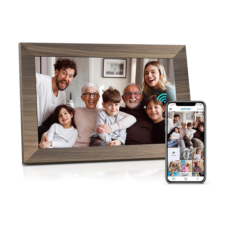 Le Cadre Photo Numérique Canupdog se démarque par son design unique en bois vieilli qui apporte une touche rustique et chaleureuse à n'importe quel intérieur. L'écran tactile IPS de 10,1 pouces avec résolution HD 1280x800 offre une qualité d'image correcte, bien que légèrement inférieure aux modèles premium du marché.